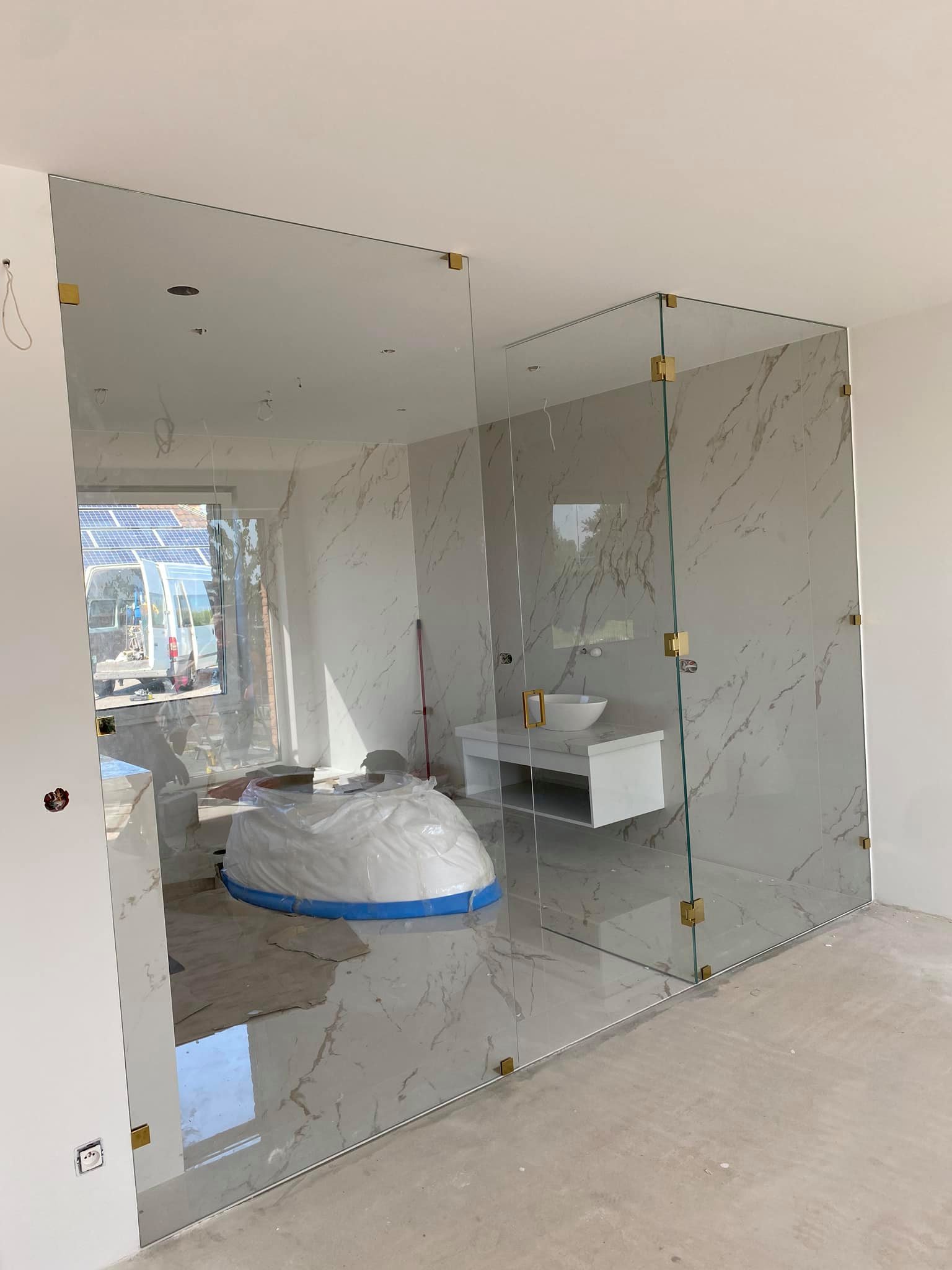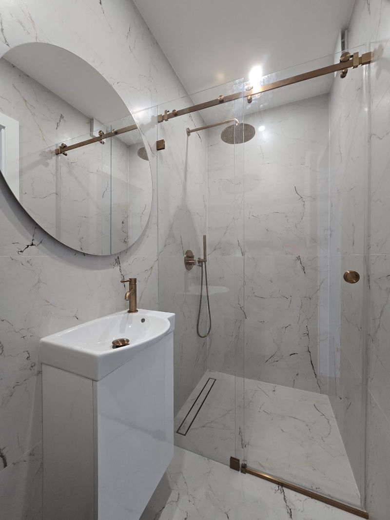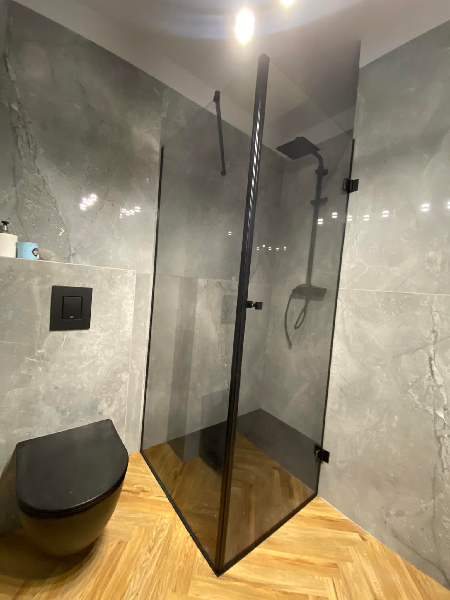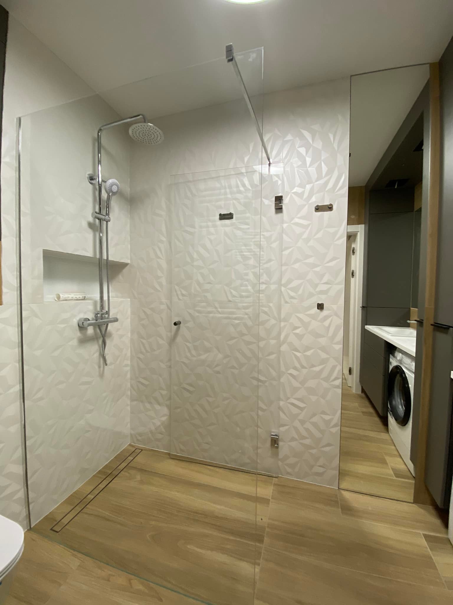• Kabiny i parawany: kabiny prysznicowe (również bez brodzika, walk-in), parawany nawannowe oraz szklane przeszklenia łazienek.